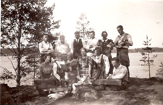 Kanteleen soitto ja laulu kokosi usein nuoret yhteen. Laulelot Pukkisaaren kalliolla 30-luvulla kanteleen säestyksellä.