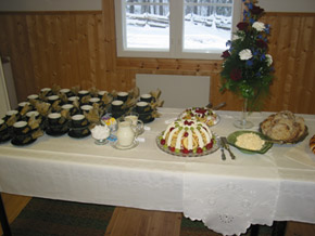 Vuorattavana on 100 hengen ruoka- ja kahviastiasto- ja kahvinkeitin sekä viljan lajittelija.